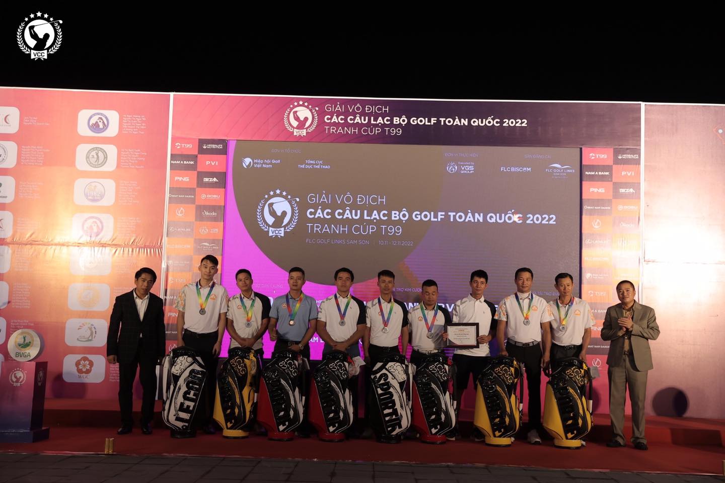 Như vậy 3 ngày thi đấu đầy cảm xúc và nỗ lực đã khép lại. Chân thành cảm ơn sự cống hiến từ các Đội tuyển, ban lãnh đội đến từ các Hội golf và các CLB trên khắp cả nước, cảm ơn các nhà tài trợ và sân golf FLC Sam Son Golf Links, các cơ quan báo chí, truyền thông đã hỗ trợ hết mình cho giải đấu, đặc biệt là sự ủng hộ đến từ hàng nghìn khán giả khắp cả nước hướng về VCC 2022 - tranh cúp T99. Kính chào tạm biệt và hẹn gặp lại quý vị trong những giải đấu sắp tới.