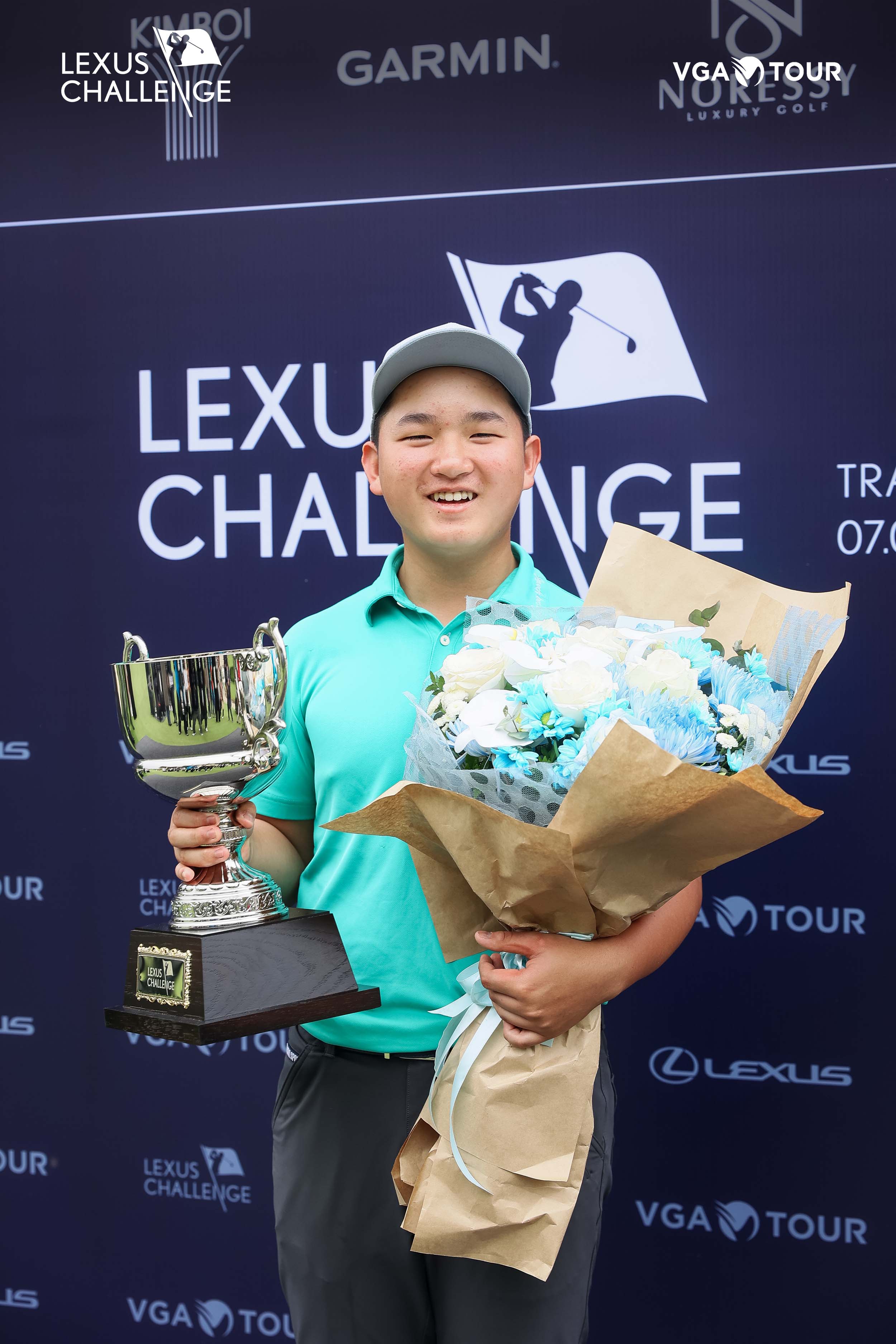 Khoảnh khắc chiến thắng của nhà vô địch trẻ Nguyễn Anh Minh tại Lexus Challenge chiều 11/3. Ảnh: VGA