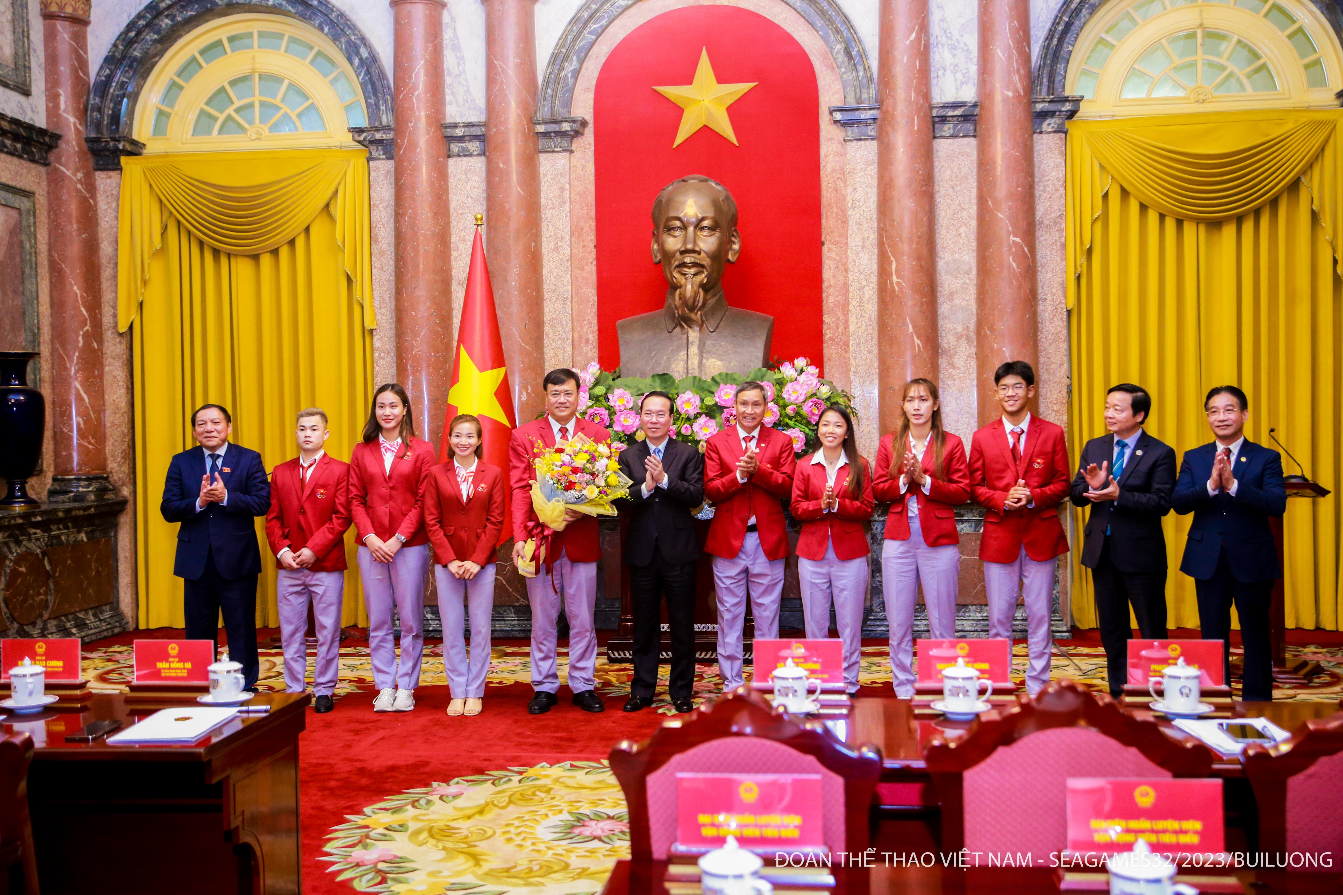 Vinh dự thay mặt các VĐV phát biểu tại buổi gặp mặt, VĐV Lê Khánh Hưng, 15 tuổi, người giúp Đoàn Thể thao Việt Nam lần đầu tiên đoạt Huy Chương Vàng môn Golf tại SEA Games, bày tỏ tự hào được khoác lên mình lá tờ Tổ quốc khi giành HCV. Đây là điểm tựa, niềm tin để Khánh Hưng và đồng đội tiếp tục nỗ lực rèn luyện, phấn đấu, giành thành tích cao hơn cho thể thao nước nhà.