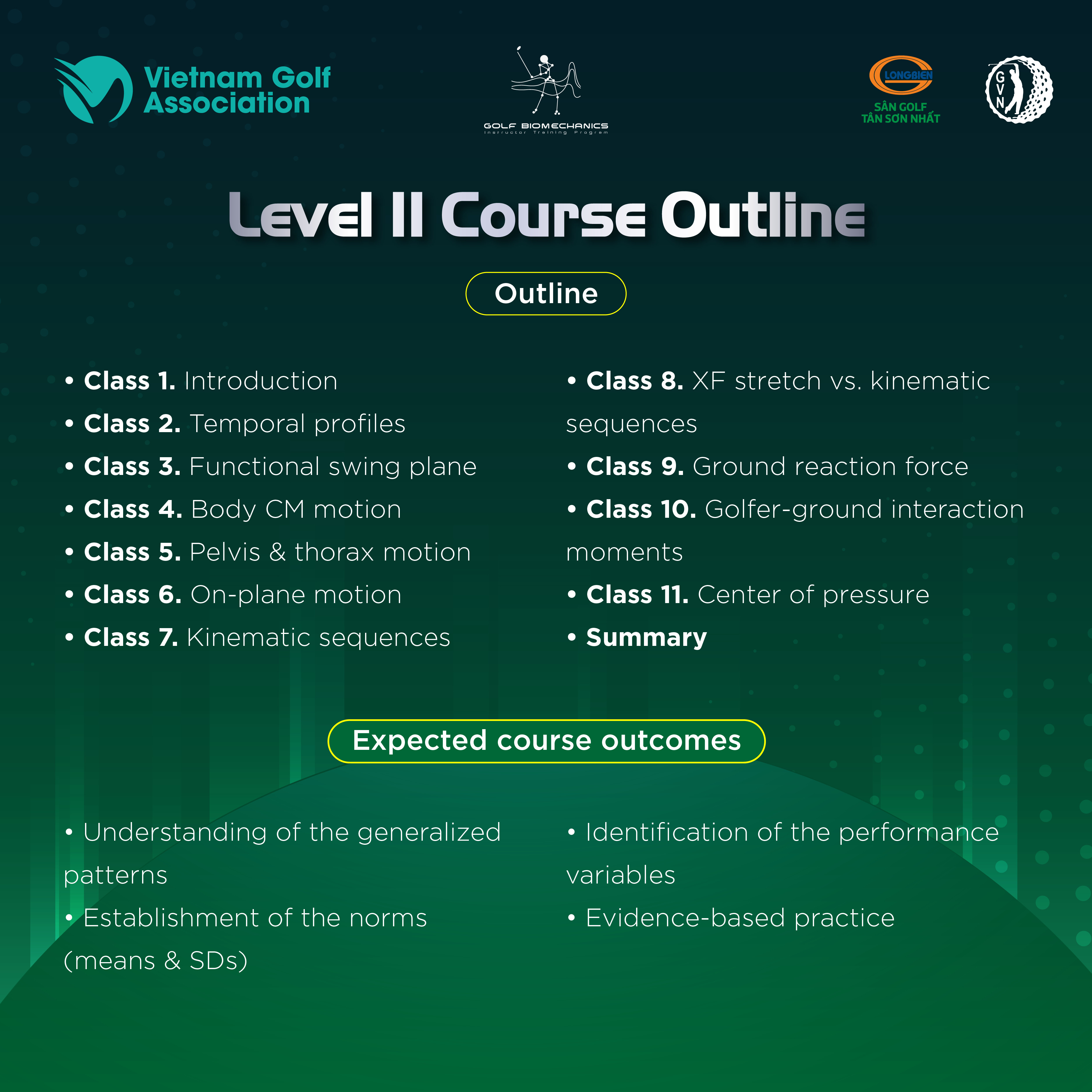 Dưới đây là lộ trình học chi tiết khóa cơ sinh học Golf Biomechanics:
