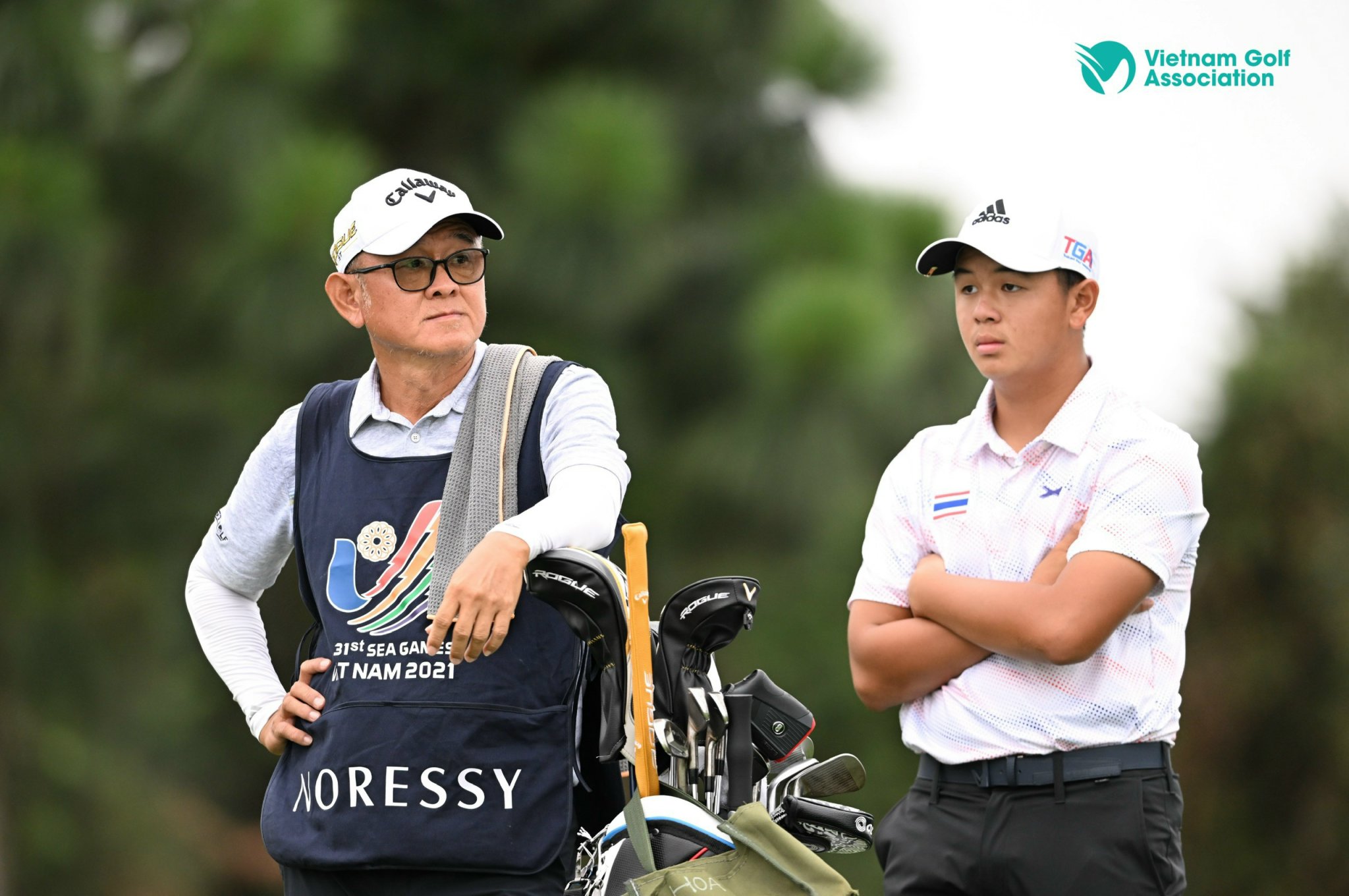 Trang phục của caddie Quốc tế (bên trái), đồng hành cùng tuyển thủ Thái Lan