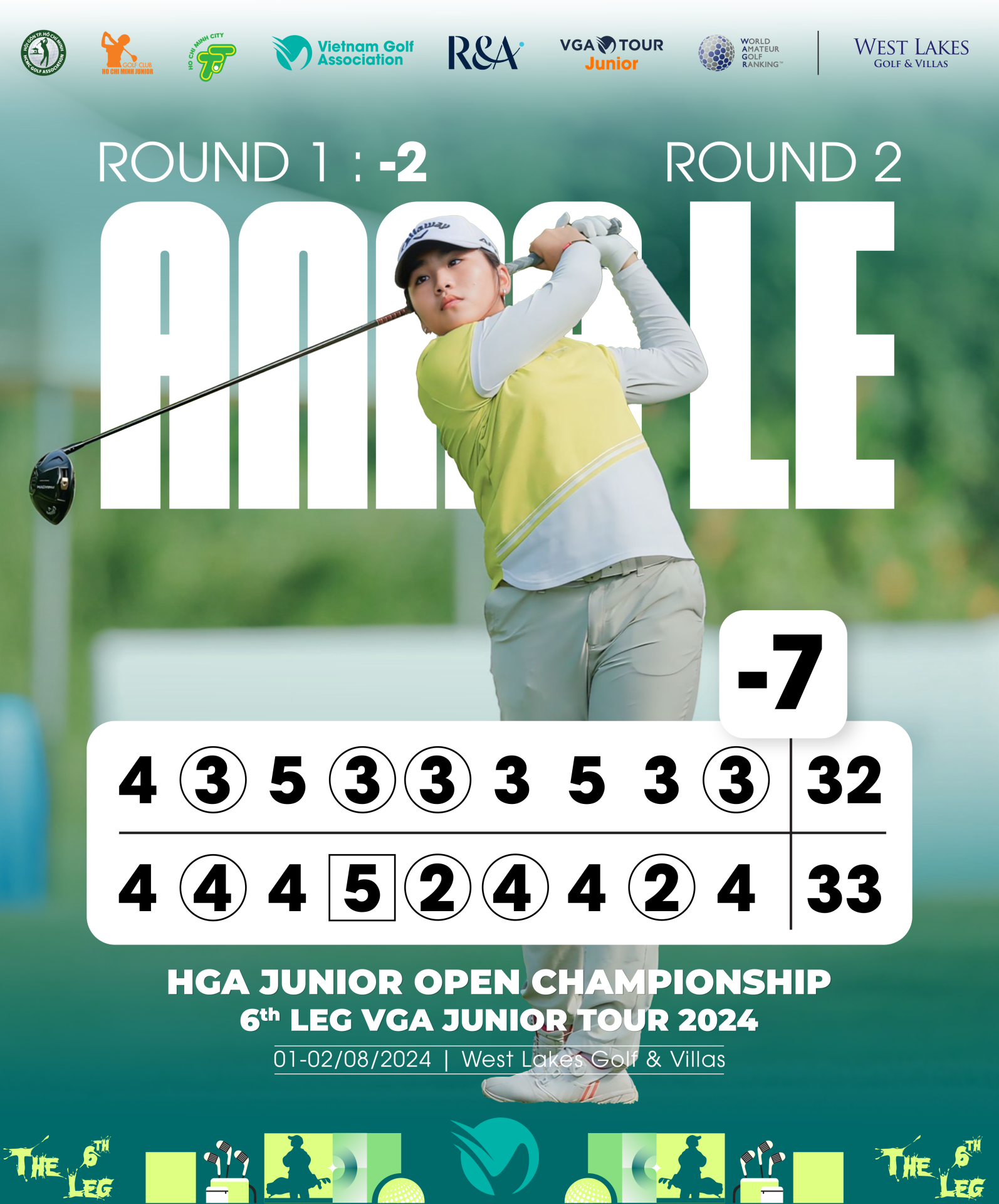 Nhưng tới vòng 2, Hồ Anh Huy đã không thể bảo vệ vị trí nhất bảng và “nhường” lại vị trí này cho Anna Lê. Nổi bật nhất vòng 2, Anna Lê vươn lên giữ ngôi đầu bảng cùng thành tích (-7) và cô khép lại 2 vòng đấu với tổng thành tích (-9). Trong vòng 2, Anna Lê ghi tới 8 birdie, trong đó có những lần cô ghi 2 birdie liên tiếp, như tại hố 14 - 15, hố 4 - 5, và cô chỉ mắc 1 bogey ở hố 13. Vị trí thứ 2 - Hồ Anh Huy đã có vòng đấu kém may mắn cùng tổng điểm (-2). Nguyễn Giang Bảo Luân tiếp tục giữ vị trí T3 trên BXH với điểm (+1). Nguyễn Trọng Hoàng cũng xếp vị trí T3.