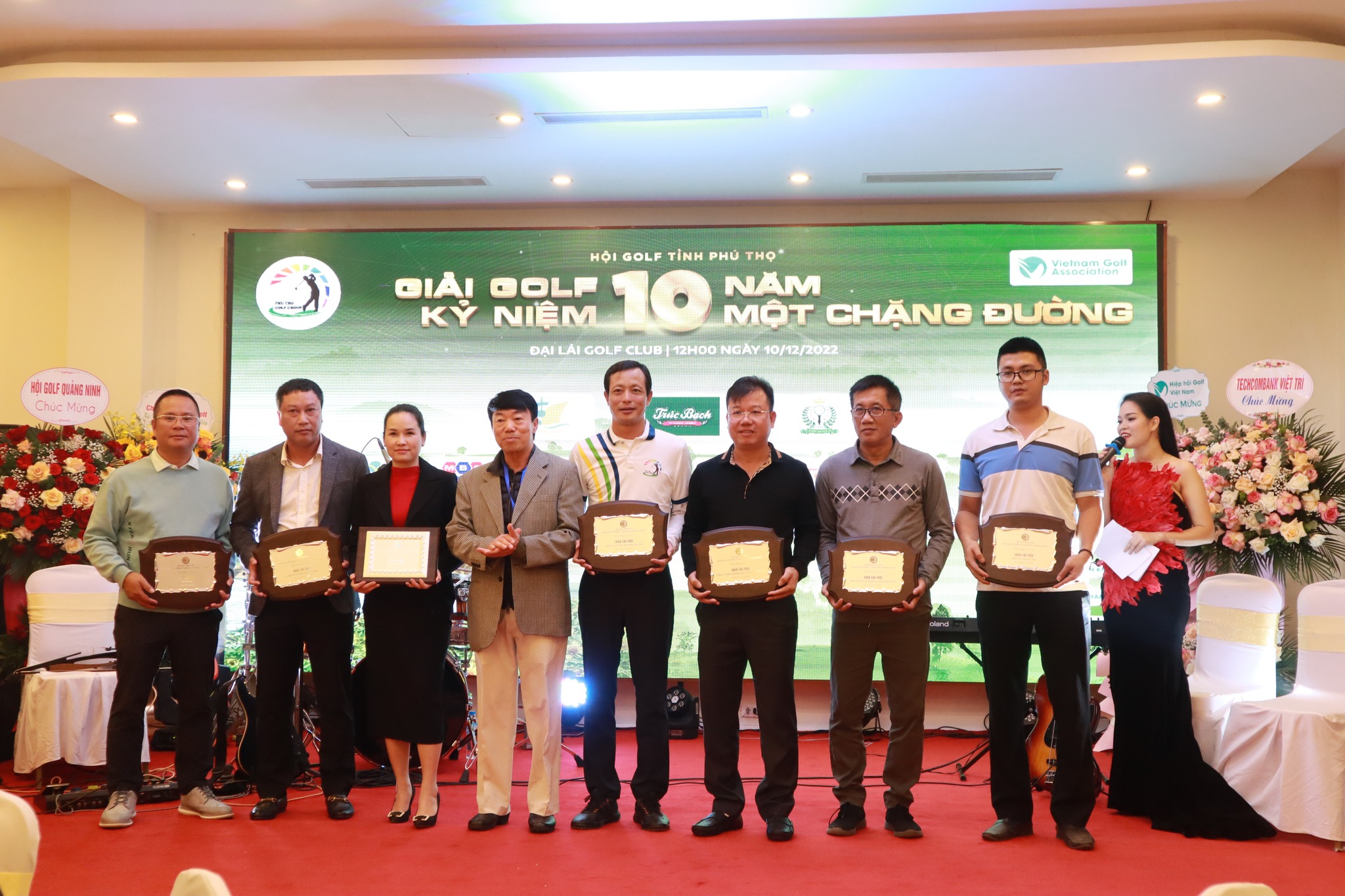 Giải golf Kỷ Niệm 10 Năm Thành Lập cũng là dịp để Hội golf tỉnh Phú Thọ tri ân và gửi lời cảm ơn tới các đơn vị, đối tác đã đồng hành và giúp đỡ Hội golf tỉnh Phú Thọ có những thành tích nổi bật như hiện tại. Đó là: Cát Vàng Group, Công ty NHH Lân Huế, TM VIETGOLF, Công ty CP Bia rượu NGK Hà Nội, Công Ty TNHH TM và DV Việt Lâm, Công ty CP TM và DV Ngọc Đất Tổ, Công ty CP Bia rưọu Hà Nội Hopmat, Công ty TNHH Sơn Hải, Công ty Du lịch Đất Việt Xanh, MBG Group, Công ty CP DV và, Công ty CP Dịch vụ văn hóa thể thao, Công ty CP đầu tư SGOLF, Công ty TNHH Te- Vinaprime. Công ty TNHH Trường Phát, Siêu thị OCOP Phú Thọ, Siêu thị Phú Cường, Công ty TNHH Đồng Tiến, Công ty TNHH Tuấn Huy, Hương Golf và rất nhiều các cá nhân khác là Doanh nhân có nguyên quán tại Phú Thọ.