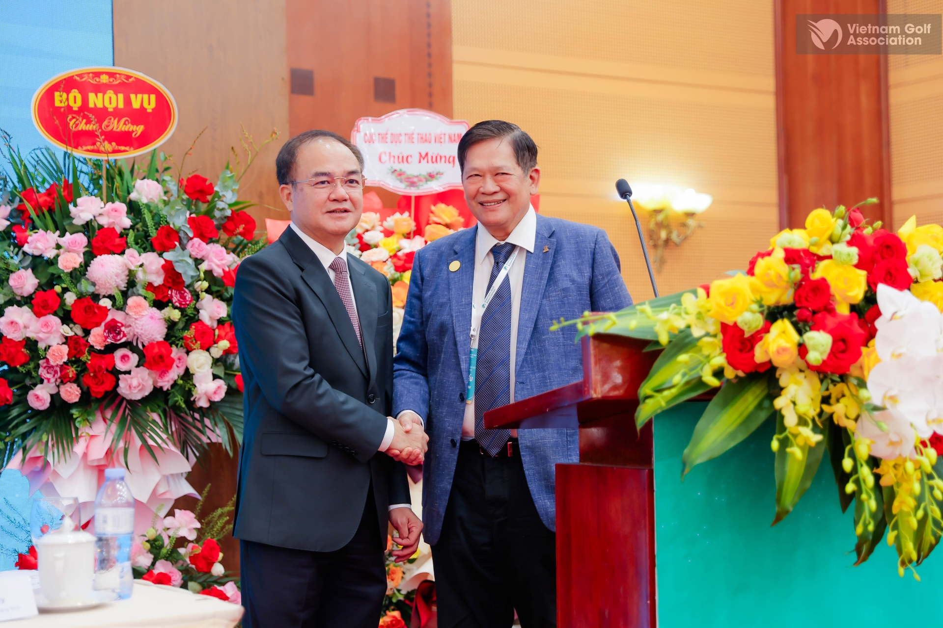 Đại hội vinh dự đón tiếp Thứ trưởng Bộ Nội Vụ - Ông Vũ Chiến Thắng, Cục trưởng Cục Thể dục Thể thao Việt Nam - Ông Nguyễn Danh Hoàng Việt, Chủ tịch Hiệp hội Golf Việt Nam nhiệm kỳ IV - Ông Lê Kiên Thành, cùng các thành viên trong Ban Thường vụ, Ban Chấp hành và Ban Kiểm tra của Hiệp hội.