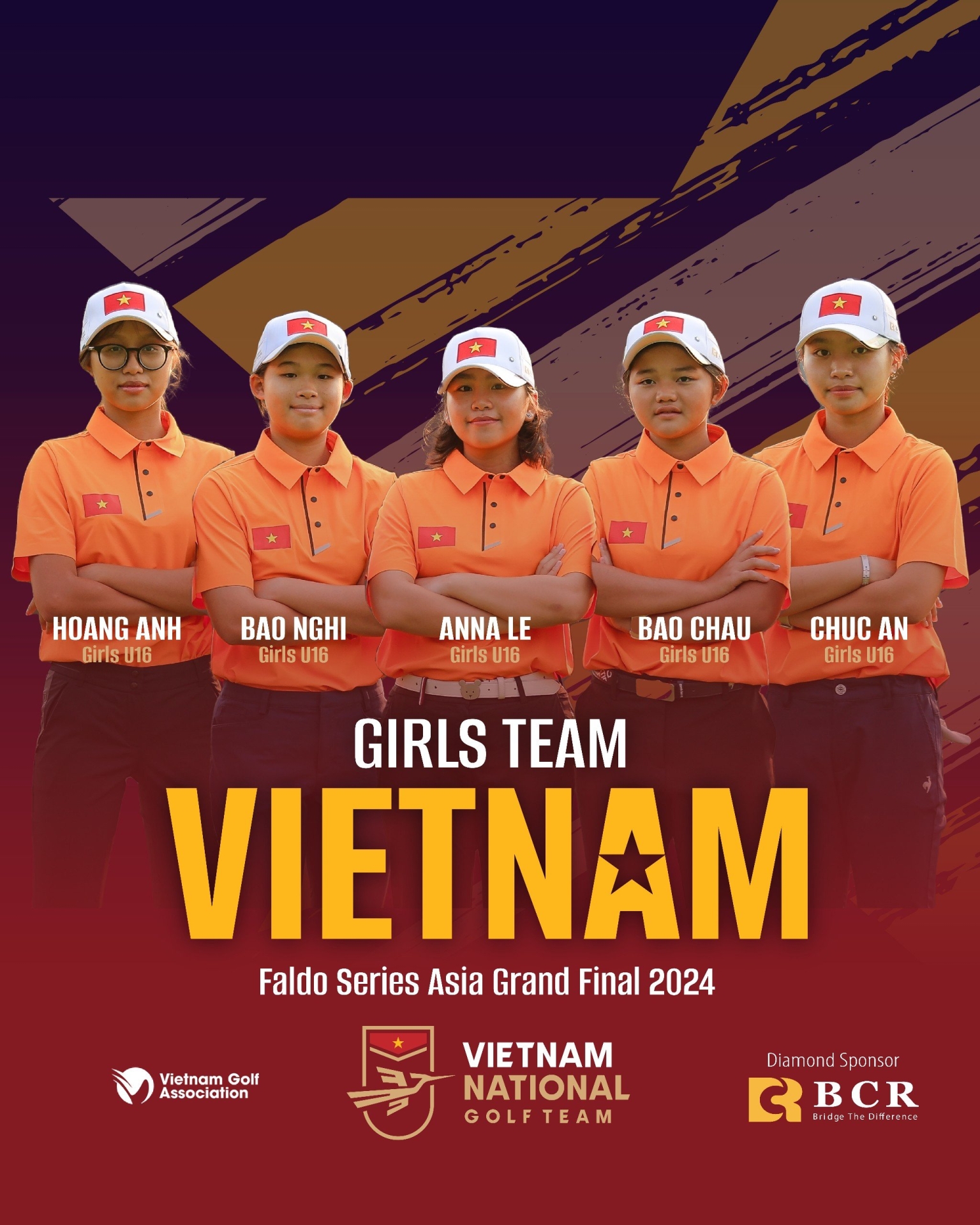Đội tuyển Nữ: Lê Chúc An, Thân Bảo Nghi, Nguyễn Vũ Hoàng Anh, Anna Lê, Nguyễn Bảo Châu