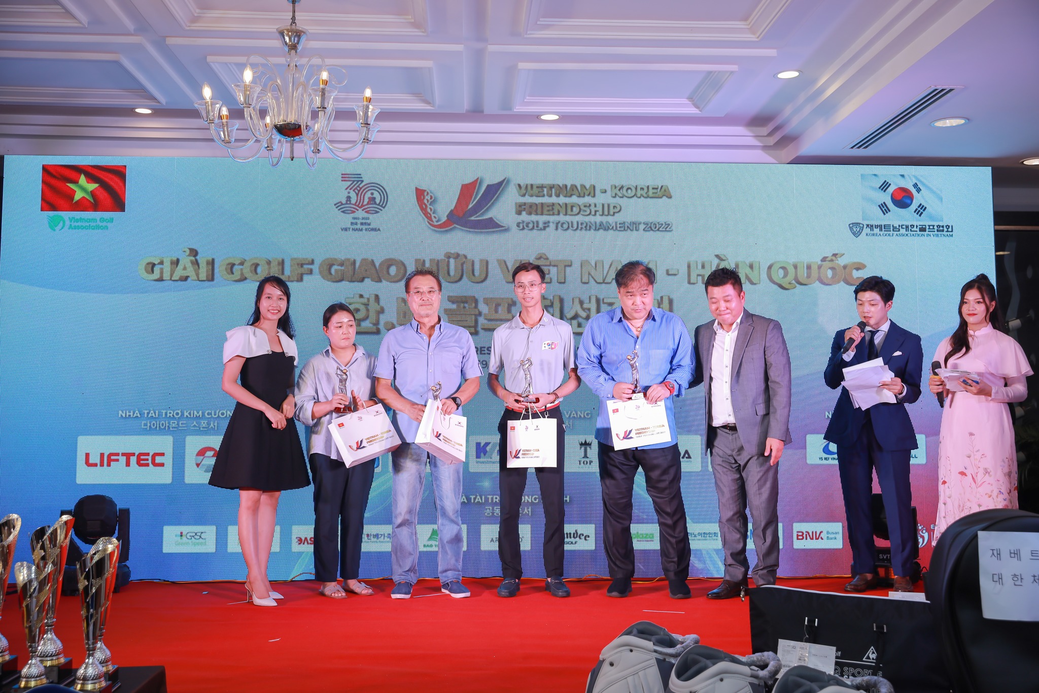 Buổi chiều , các golfer đăng ký giải VIP trong khuôn khổ giải giao hữu Vietnam - Korea Friendship Golf Tournament 2022 bắt đầu màn tranh tài. Giải đấu Vip quy tụ nhiều golfer Việt Nam và Hàn Quốc, thi đấu theo thể thức là 1 vòng đấu gậy 18 hố. Golfer Nguyễn Văn Tám đã xuất sắc dành giải Best Gross của giải với điểm gross 78, net 71. Vị trí nhất bảng A, B, C, bảng Nữ lần lượt thuộc về các golfer: Hong Son Mong, Lê Văn Hùng, Park Tae Soo, Nguyễn Thị Tuyết Chinh. Ngoài ra là các giải nhì và ba ở mỗi bảng cùng các giải kỹ thuật cũng đều tìm được những chủ nhân xứng đáng. Chúc mừng các golfer đã đạt giải tại giải VIP. Hy vọng những phút giây giao lưu giữa golfer Việt Nam và Hàn Quốc sẽ là kỷ niệm khó quên trong lòng các golfer.