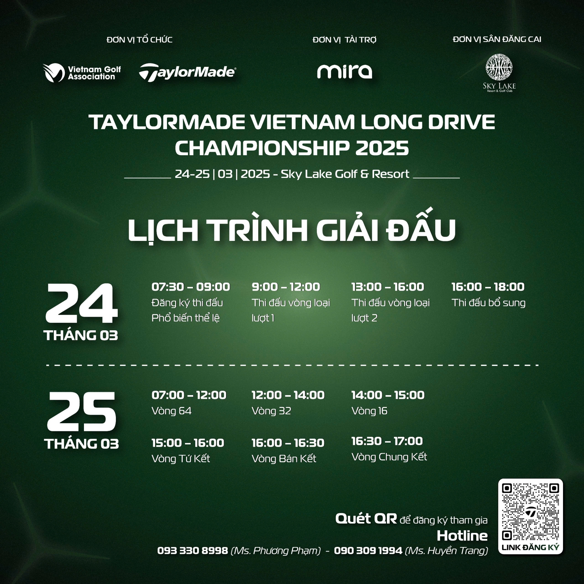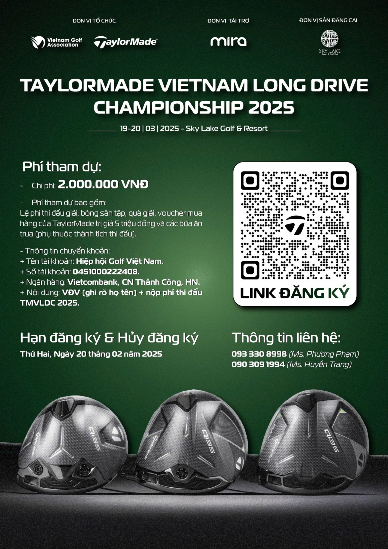 Tháng 3 năm 2025, Hiệp hội Golf Việt Nam phối hợp cùng TaylorMade sẽ tổ chức giải TaylorMade Vietnam Long Drive Championship 2025. Giải đấu sẽ chính thức diễn ra từ ngày 24 tới 25 tháng 03 sân Sân Golf Skylake Golf & Resort, Chương Mỹ, Hà Nội – Việt Nam. Đây là sự kiện lần đầu tiên được tổ chức tại Việt Nam với quy mô và số tiền thưởng rất hấp dẫn. Dự kiến, giải đấu sẽ thu hút hơn 300 golfer đến từ khắp nơi trên cả nước. Điều đặc biệt, giải mở rộng cơ hội tham gia cho tất cả các vận động viên có quốc tịch Việt Nam, không phân biệt giữa các golfer chuyên nghiệp hay nghiệp dư, độ tuổi hay Handicap.