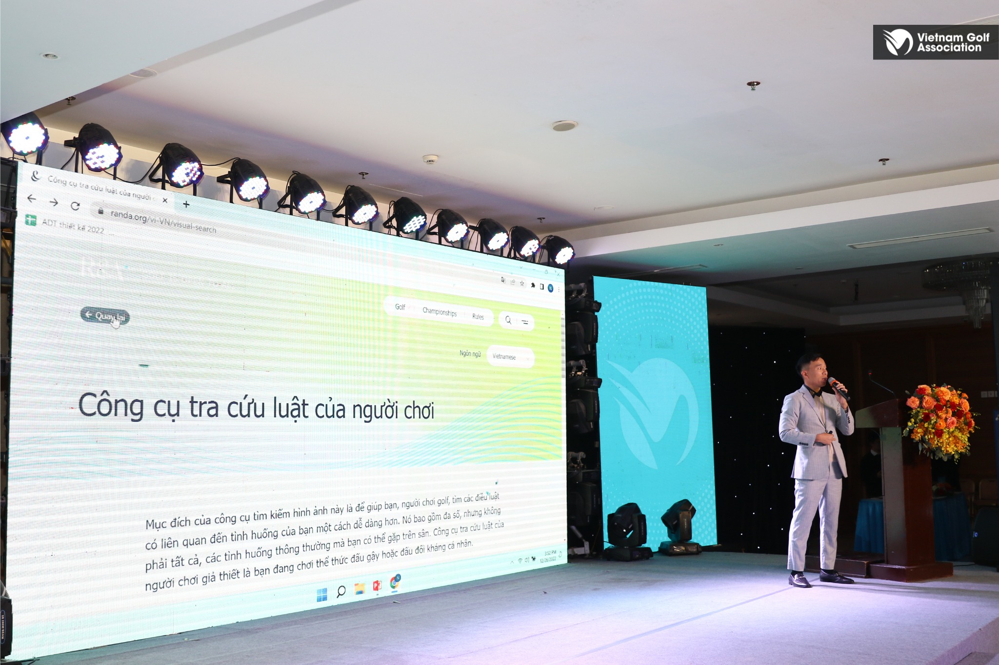 - VGA thông qua tổ chức chuyên môn là Hội Đồng Trọng Tài Golf Quốc Gia (HĐTT) đã thực hiện công việc biên dịch và phát triển một dự án phiên bản Luật Golf tiếng Việt từ đầu năm 2022, đồng hành cùng R&A trong việc phát triển các ngôn ngữ Luật và lần đầu tiên VGA cho ra mắt cùng thời điểm với R&A và USGA trước khi phiên bản Luật Golf này có hiệu lực vào ngày 1 tháng 1 năm 2023, qua đó khẳng định vị thế của Golf Việt Nam với bạn bè Quốc tế.