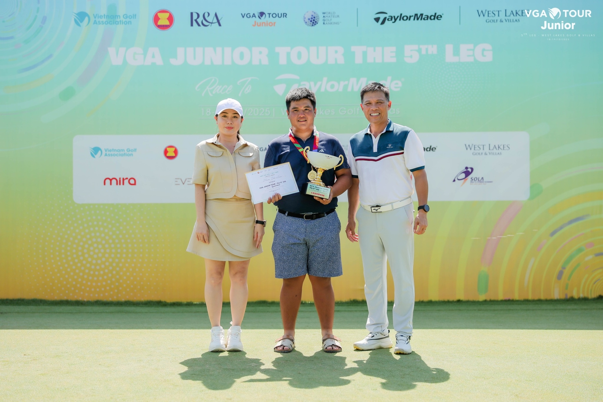 Tại chặng 5 VGA Junior Tour 2025, Ban Tổ chức trân trọng cảm ơn sự đồng hành của các đơn vị tài trợ: Công ty CP Thăng Long TM Việt Nam, West Lakes Golf & Villas, Công ty TNHH Mira TAV, Học viện SGA, Học viện JAGA Vietnam, Diễn đàn Golfer Việt Nam GVN, Sola Golf & Fitness Academy, Nami Energy, Mr. Nguyễn Việt Dũng và Công ty Cổ phần Nội Thất Nem, Công ty thiết kế xây dựng The Wall - những đối tác đã góp phần tạo nên một mùa giải thành công và giàu ý nghĩa.