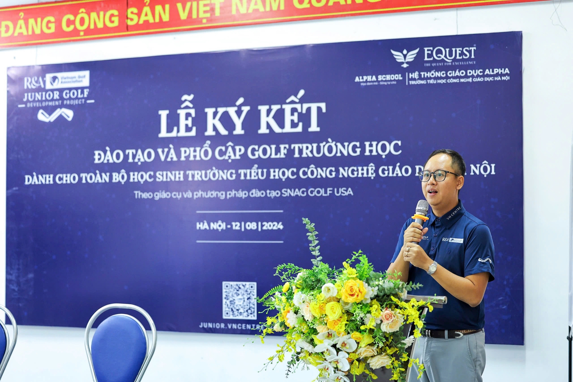 Sau cùng, lễ ký kết hợp tác ngày hôm nay có ý nghĩa đặc biệt quan trọng, là một bước đi mới và đột phá của golf học đường tại Việt Nam, có ý nghĩa quan trọng trong việc phát triển các hoạt động thể thao của học sinh, sinh viên bảo đảm mục tiêu phát triển thể lực toàn diện và kỹ năng vận động cơ bản, góp phần phát hiện và đào tạo năng khiếu và tài năng thể thao. Gắn kết giữa thể thao quần chúng và thể thao thành tích cao. Gắn giáo dục thể chất, thể dục thể thao trong các nhà trường với giáo dục ý chí, đạo đức, lối sống, kỹ năng sống cho trẻ nhỏ và gia đình theo như mục tiêu Chương trình số 03 của Đề án tổng thể phát triển thể lực, tầm vóc người Việt Nam giai đoạn 2011 - 2030 theo Quyết định 641/QĐ-TTg và Chương trình Sức khỏe học đường giai đoạn 2021 - 2025 theo Quyết định số 1660/QĐ-TTg của Thủ tướng Chính phủ mà Dự án Phát triển Golf trẻ R&A – VGA đang chung tay cùng thực hiện.