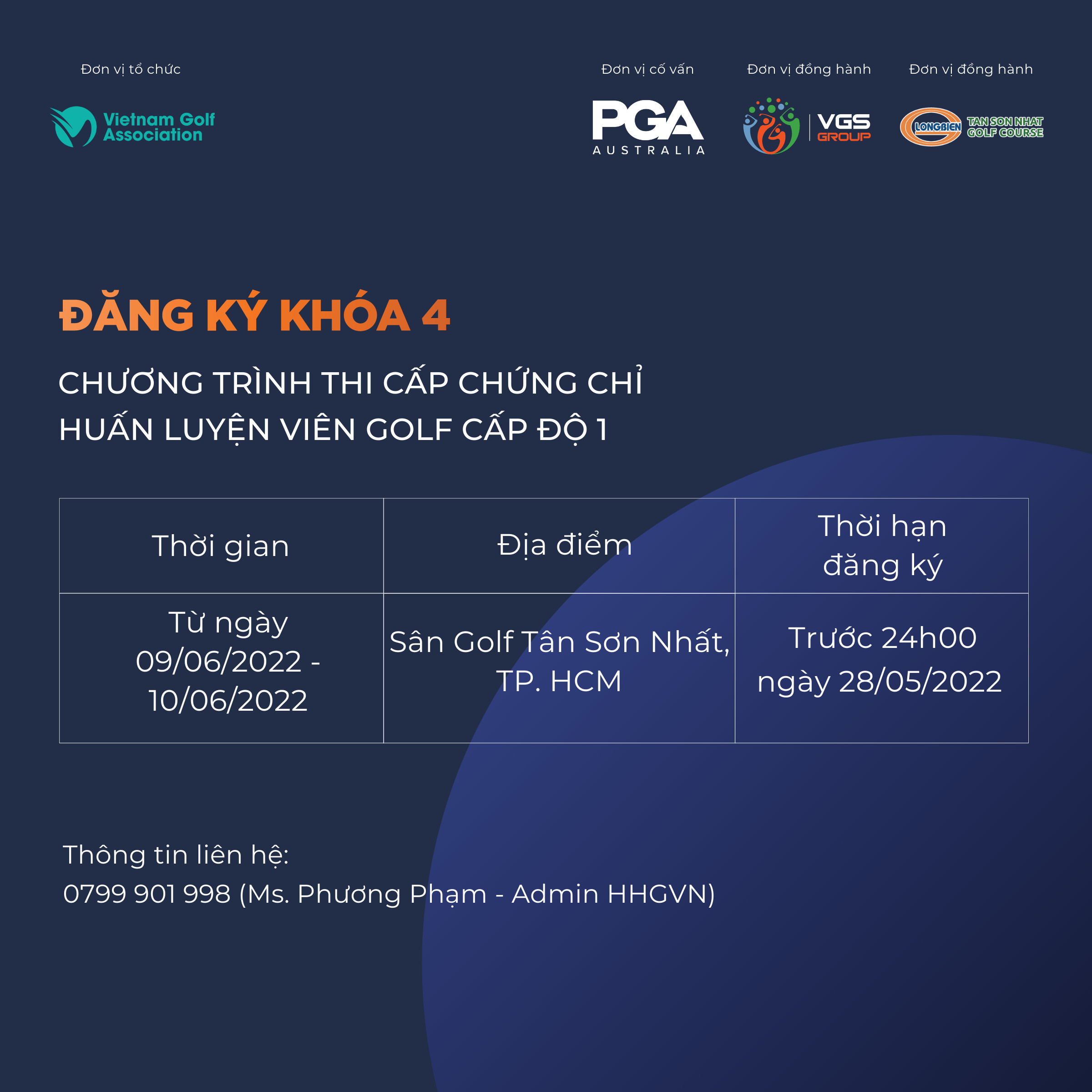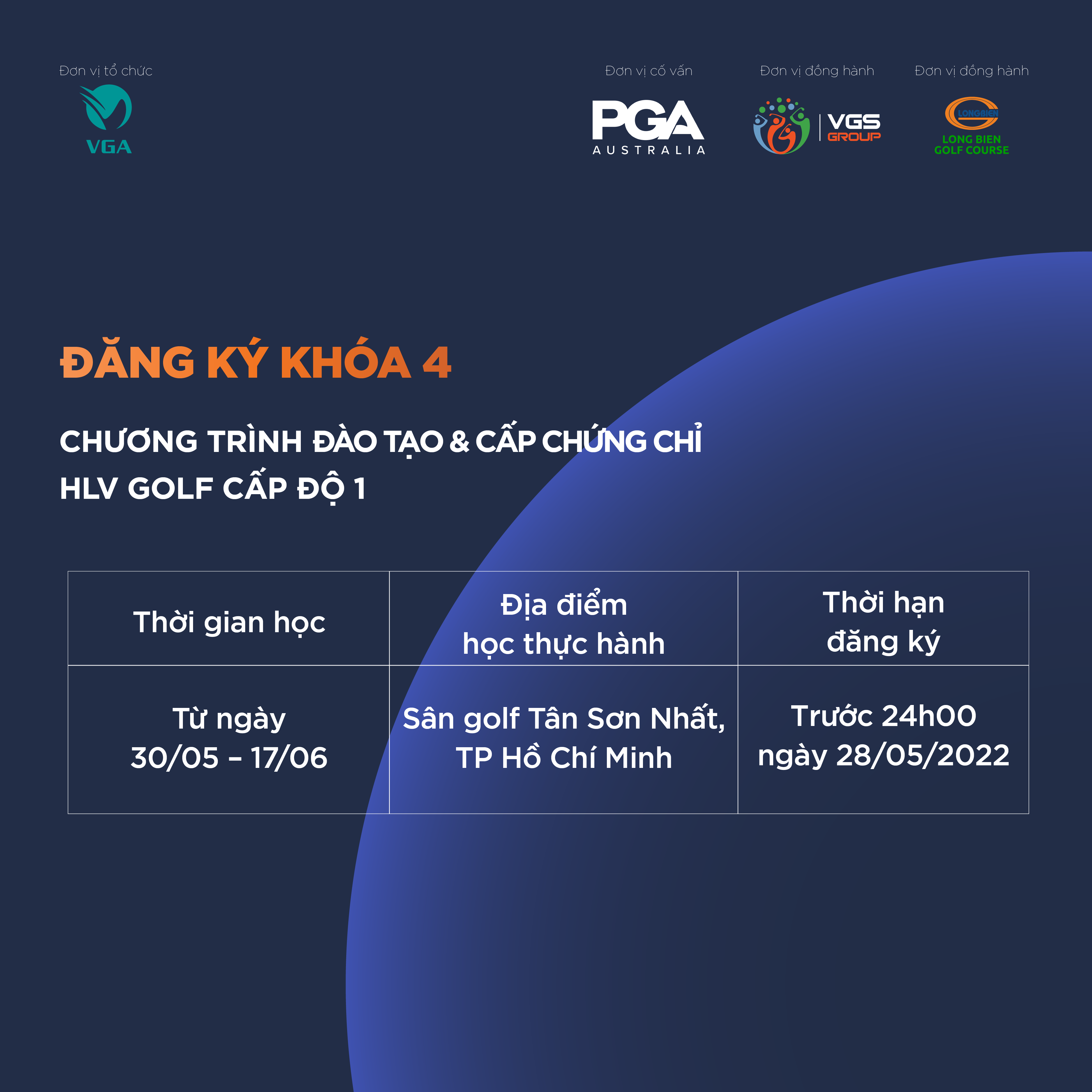 Đây là Chứng chỉ được chuẩn hoá Quốc tế, được công nhận bởi Tổng cục Thể dục Thể thao Việt Nam và Hiệp hội Golf Việt Nam trên con đường giảng dạy chuyên nghiệp của các học viên. Không chỉ các học viên khoá 4, các cựu học viên hoặc bất kì ai đủ điều kiện có nhu cầu thi lại lấy Chứng chỉ hoàn toàn có thể đăng kí. Thông tin chi tiết kì thi: